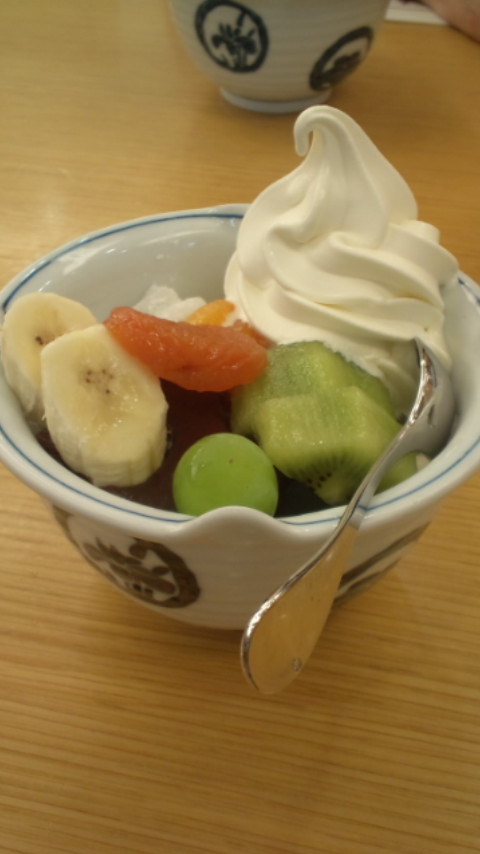 すがさんときゅうびさんと韓国料理食べて、クリームあんみつ食べました。