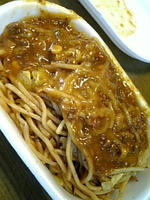 太いやきそば?に、ミートソース?あん?がかかってます