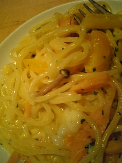 サーモンのカルボナーラにいっこだけきのこ入ってた