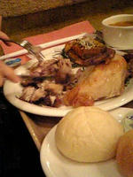 ハヤさんはでかい鶏肉に悪戦苦闘でした